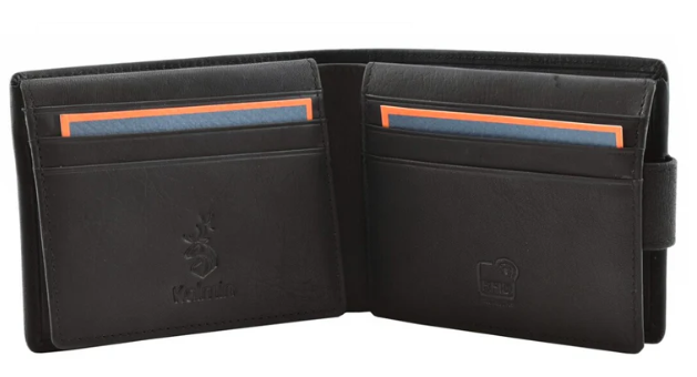 Black Leather Bifold Wallet with Card Slots and Cards – Kolmino