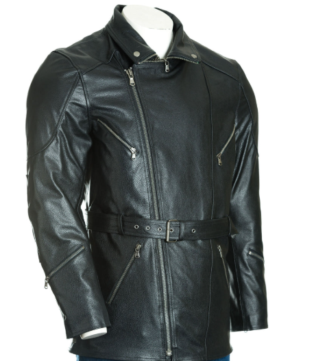 Channel your inner rebel with the Black Leather Biker Coat with Zippered Pockets by Kolmino. Made from high-quality black leather, this coat features an asymmetrical zippered front, multiple zippered pockets, and a belted waist for a timeless biker aesthetic. The sleek leather finish ensures durability and style, making it a versatile addition to any wardrobe. Ideal for men who want a classic, rugged look, this coat is perfect for motorcycle rides or casual outings. Pair it with jeans for a cool, effortless look with Kolmino’s signature craftsmanship.