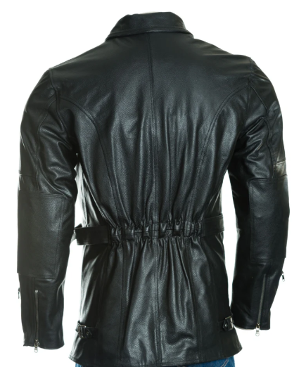 Black Leather Biker Coat with Zippered Pockets – Kolmino