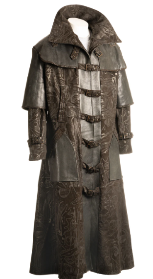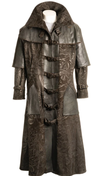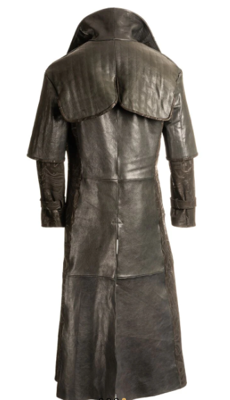 Embrace vintage charm with the Brown Leather Duster Coat with Embossed Pattern (Alternate View) by Kolmino. Crafted from premium brown leather, this long duster coat features an intricate embossed pattern, multiple buckle closures, and shoulder flaps, showcasing a gothic, vintage-inspired design. The high collar adds a dramatic flair, while the rich brown leather ages beautifully, adding character over time. Perfect for men who want a unique, historical piece, this coat is ideal for cosplay, events, or bold fashion statements. Pair it with boots for a striking look with Kolmino’s quality craftsmanship.