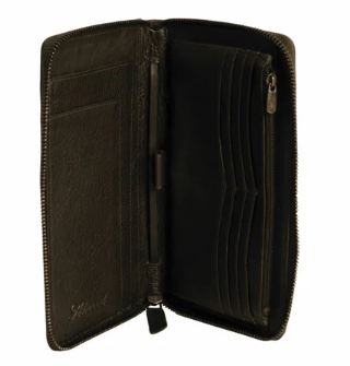 Brown Leather Zip-Around Wallet with Card Slots – Kolmino