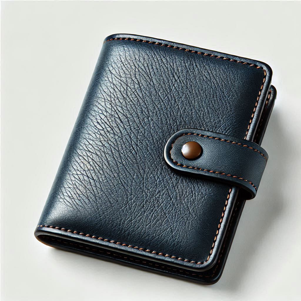 Navy Blue Leather Wallet with Snap Closure